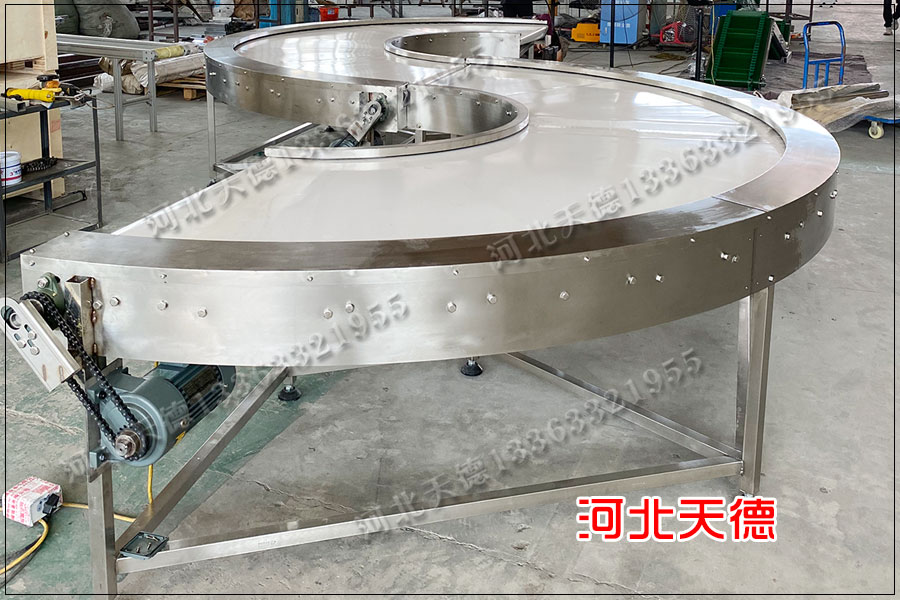 外圓弧板面,也就是滾筒的大端選用標準球面軸承,這種90度導(dǎo)輪式轉(zhuǎn)彎鏈條輸送機選擇是菱形座外球面軸承-205。其次整臺鏈條轉(zhuǎn)彎輸送機下方支撐架,機架選擇碳鋼、不銹鋼制作。整臺轉(zhuǎn)彎輸送設(shè)備高度與寬度需按客戶要求設(shè)計,驅(qū)動電機按照用戶需要設(shè)置在機架下面或機架上面。有速度調(diào)節(jié)要求要選擇變頻調(diào)速或選擇變速的減速電機。 皮帶轉(zhuǎn)彎機