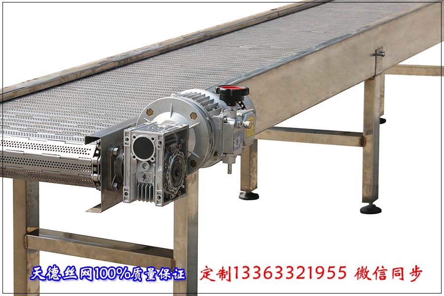 河北天德絲網(wǎng)制品有限公司生產(chǎn)電器鏈板輸送機(jī)、輸送鏈板、金屬輸送帶、板式輸送帶、平板輸送帶:13363321955