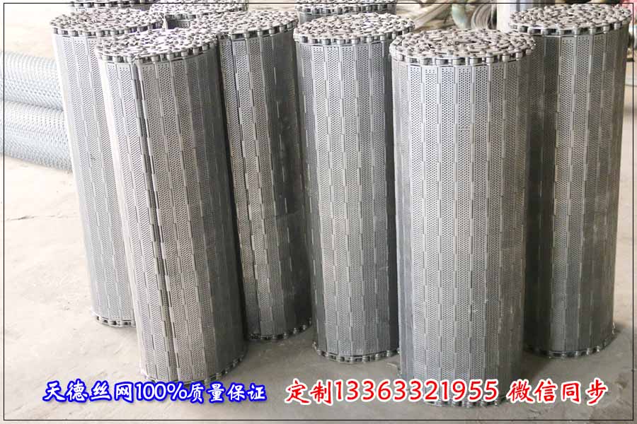 河北天德絲網(wǎng)制品有限公司生產(chǎn)不銹鋼網(wǎng)帶、鏈板、金屬輸送帶、耐磨損輸送網(wǎng)帶、擋板輸送帶:13363321955 http://hnbljm.com/