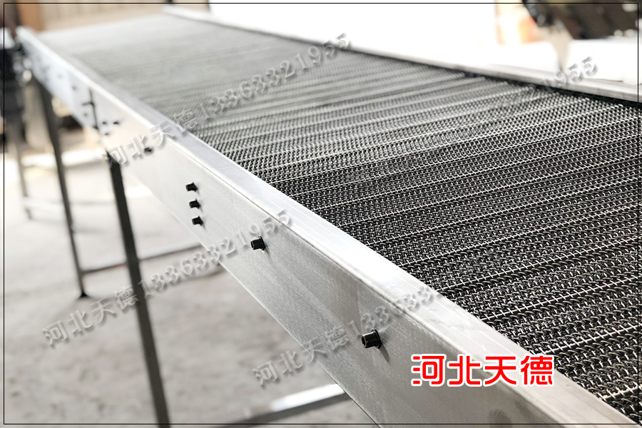 打撈水草使用的輸送機(jī)我們要采用不銹鋼304材質(zhì),網(wǎng)帶式爬坡不銹鋼輸送機(jī)我們要根據(jù)打撈的水草來定制具體的數(shù)據(jù),這里我們?yōu)闉榭蛻粼O(shè)計(jì)了一臺高度為半米,長度為五米,寬度為800毫米的輸送機(jī),共計(jì)三臺。河北天德絲網(wǎng)公司為大家設(shè)計(jì)爬坡網(wǎng)帶輸送機(jī),我們廠家保證能讓客戶購買到經(jīng)濟(jì)實(shí)惠的性價(jià)比高的不銹鋼輸送機(jī)。