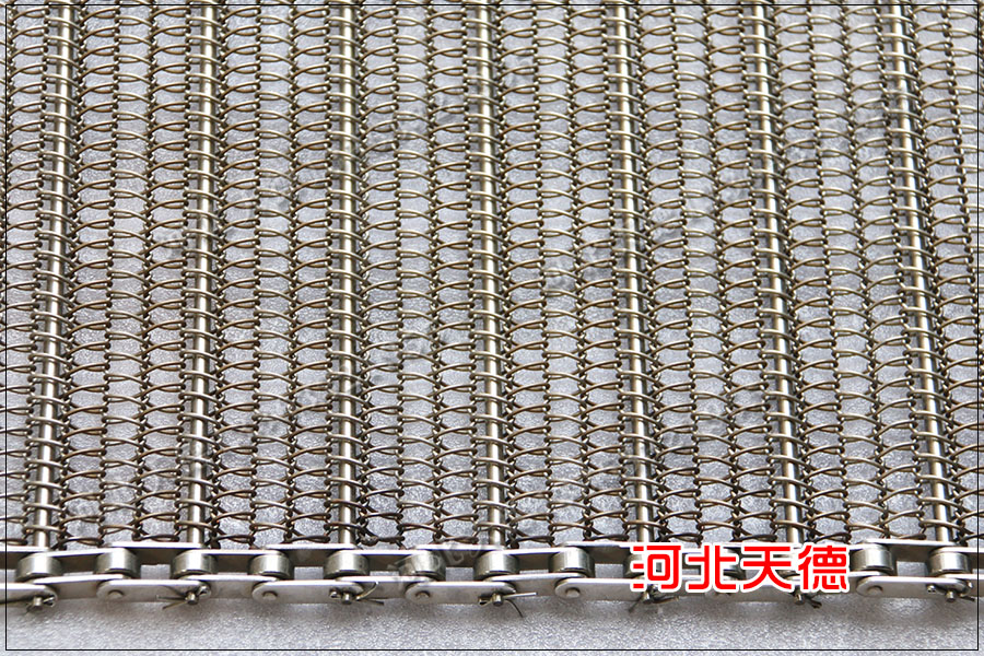 鏈條節(jié)距為38.1毫米,鏈桿直徑為8毫米,每米載重大概在10公分,烘干的食品大小大約為10*20毫米,河北天德廠家為其設計的鋼絲直徑為1.5毫米,孔大小為5*10毫米。