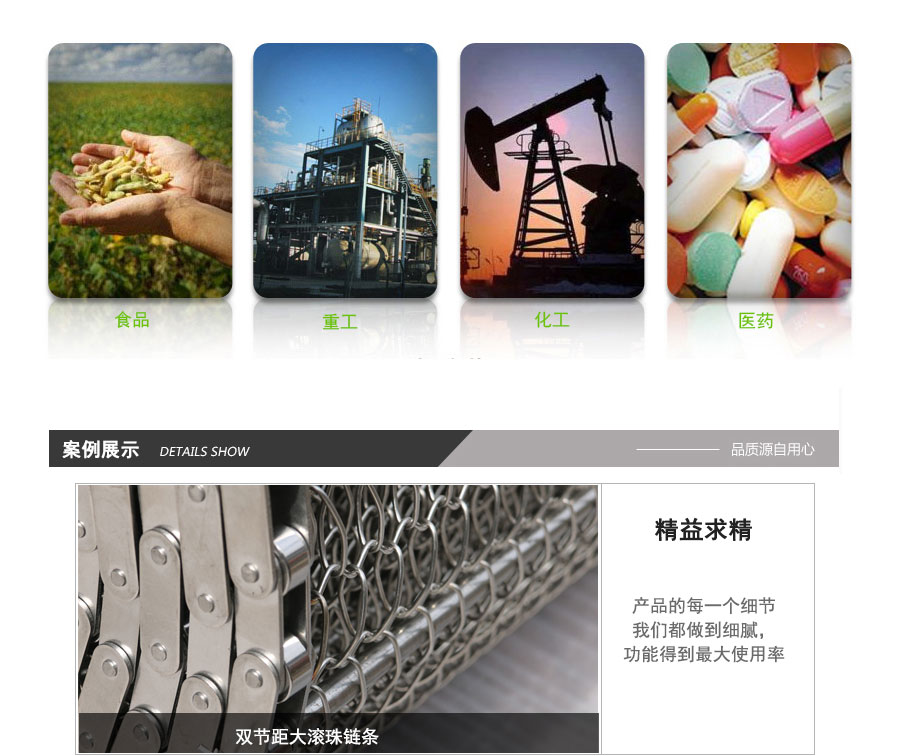 廣泛用于玻璃制品行業(yè)的退火爐網(wǎng)帶、烤花爐網(wǎng)帶等。食品加工行業(yè)、脫水蔬菜、速凍食品單凍機前處理網(wǎng)帶、鏈網(wǎng)。粉末冶金、金屬熱處理、淬火、燒結(jié)、釬焊、焙燒、光亮、發(fā)黑、軸承、滲碳高溫爐網(wǎng)帶、擋板式網(wǎng)帶、涂裝烘干線輸送網(wǎng)帶、泡沫鎳還原生產(chǎn)線網(wǎng)帶,清洗機、提升機、干燥機、烘干機、固化爐網(wǎng)帶。
