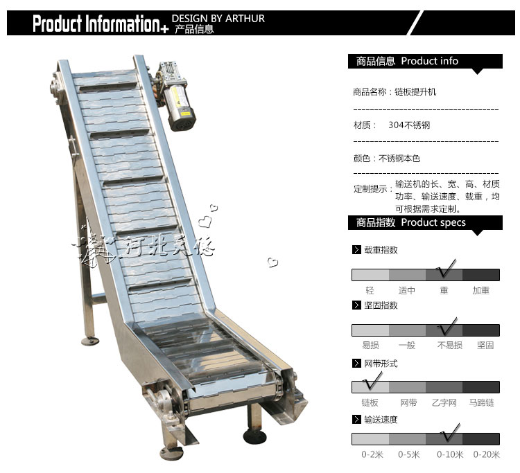 2.鏈板有不銹鋼和工程塑料等材質(zhì),規(guī)格品種繁多,可根據(jù)輸送物料和工藝要求選用,能滿(mǎn)足各行各業(yè)不同的需求。