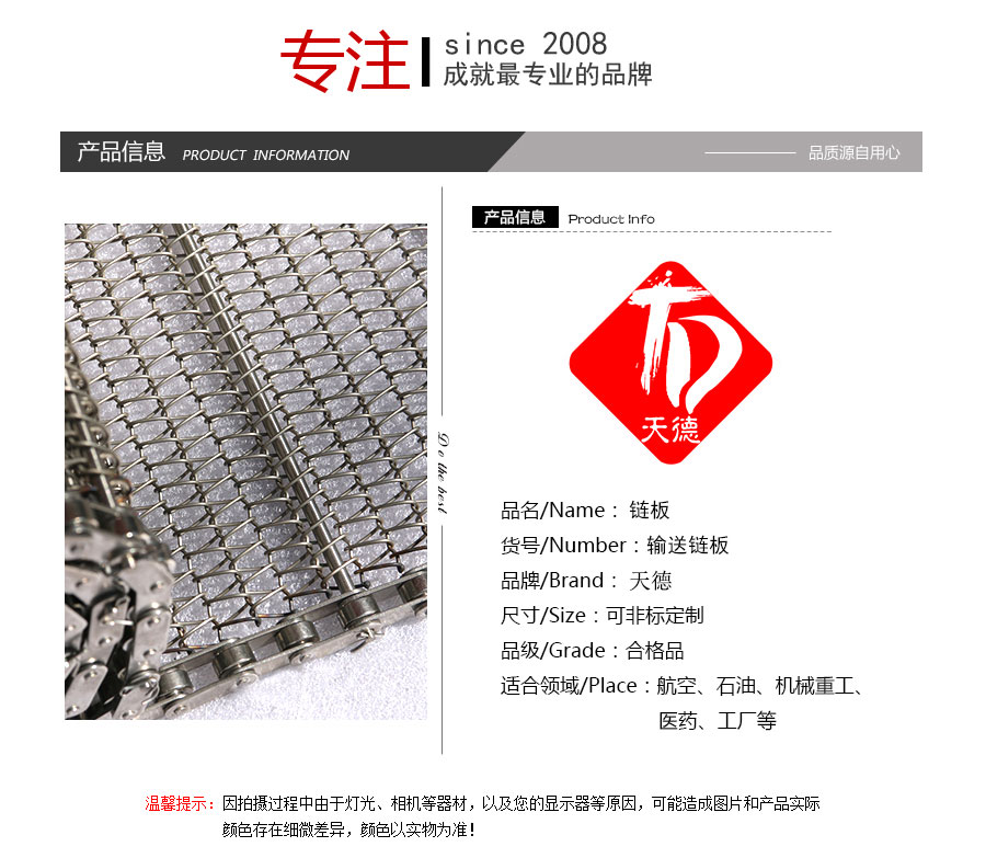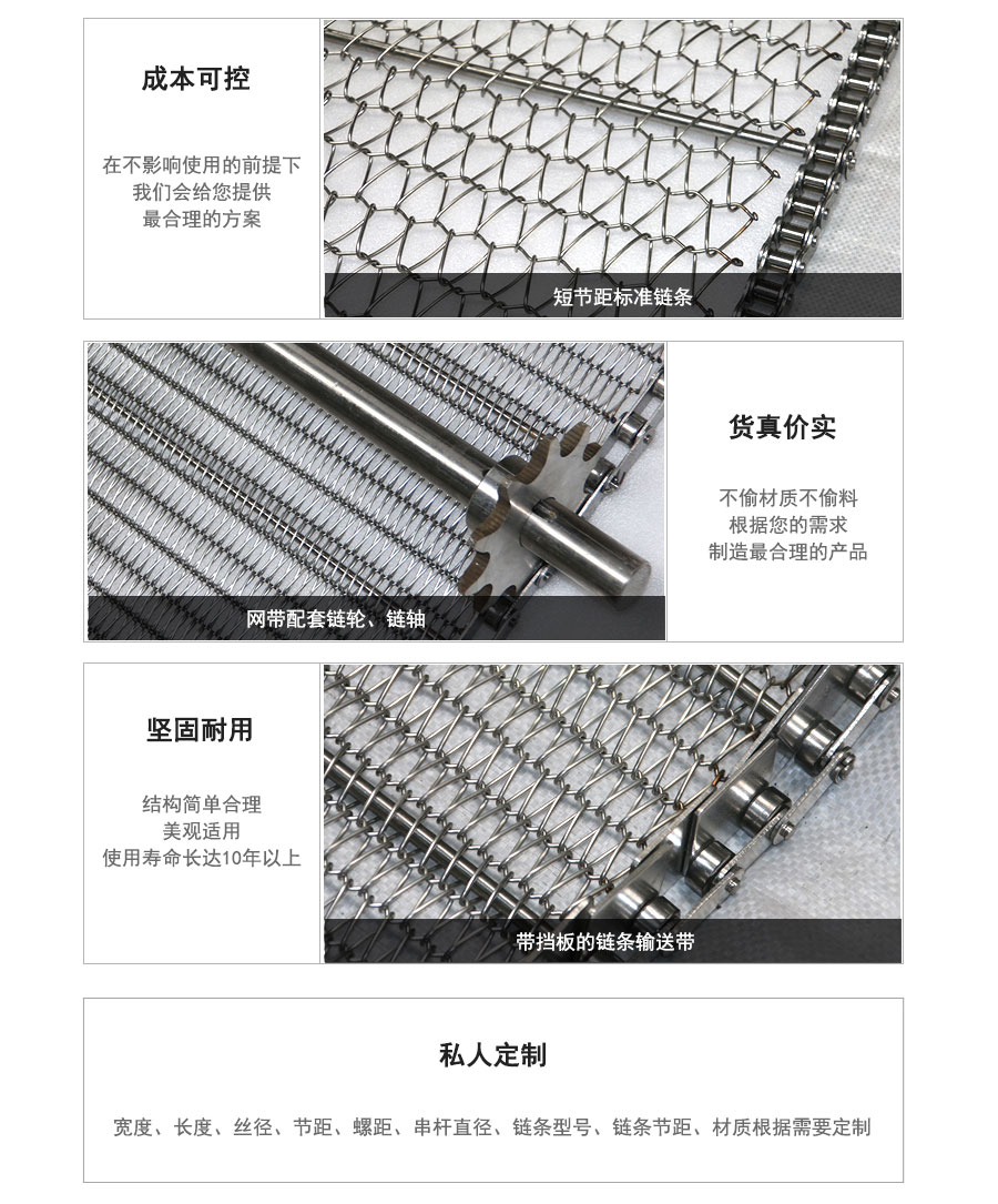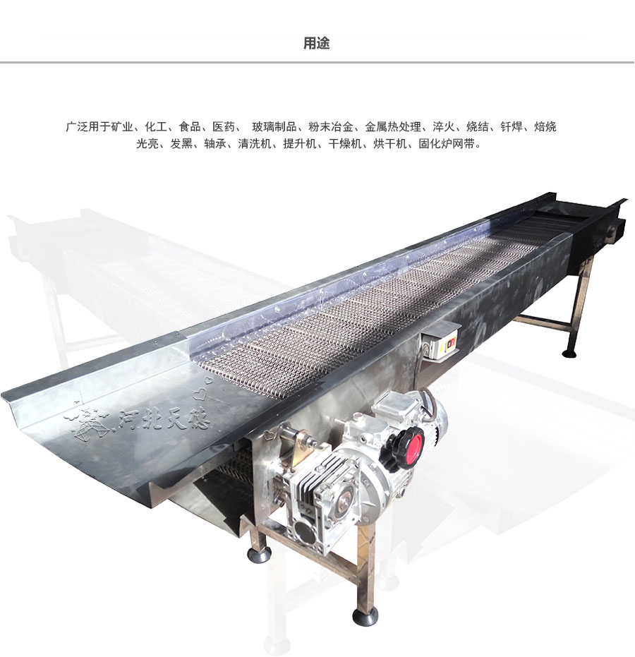 廣泛用于玻璃制品行業(yè)的退火爐網(wǎng)帶、烤花爐網(wǎng)帶等。食品加工行業(yè)、脫水蔬菜、速凍食品單凍機前處理網(wǎng)帶、鏈網(wǎng)。粉末冶金、金屬熱處理、淬火、燒結(jié)、釬焊、焙燒、光亮、發(fā)黑、軸承、滲碳高溫爐網(wǎng)帶、擋板式網(wǎng)帶、涂裝烘干線輸送網(wǎng)帶、泡沫鎳還原生產(chǎn)線網(wǎng)帶,清洗機、提升機、干燥機、烘干機、固化爐網(wǎng)帶。