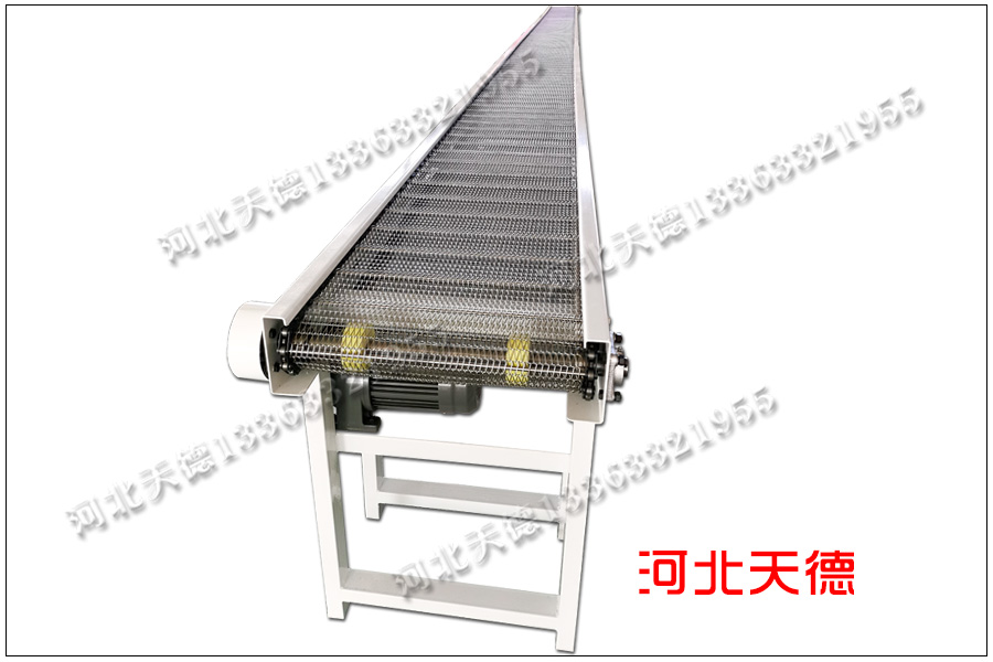 輸送線采用大滾珠鏈條式不銹鋼輸送帶來傳送物料,這種不銹鋼輸送帶是采用鋼絲編織在焊邊,鏈接上串桿與鏈條加工成的,詳細(xì)的規(guī)格尺寸是根據(jù)輸送產(chǎn)品的大小與重量來定制的,本臺(tái)網(wǎng)帶輸送機(jī)鏈條輸送帶詳細(xì)的尺寸為: