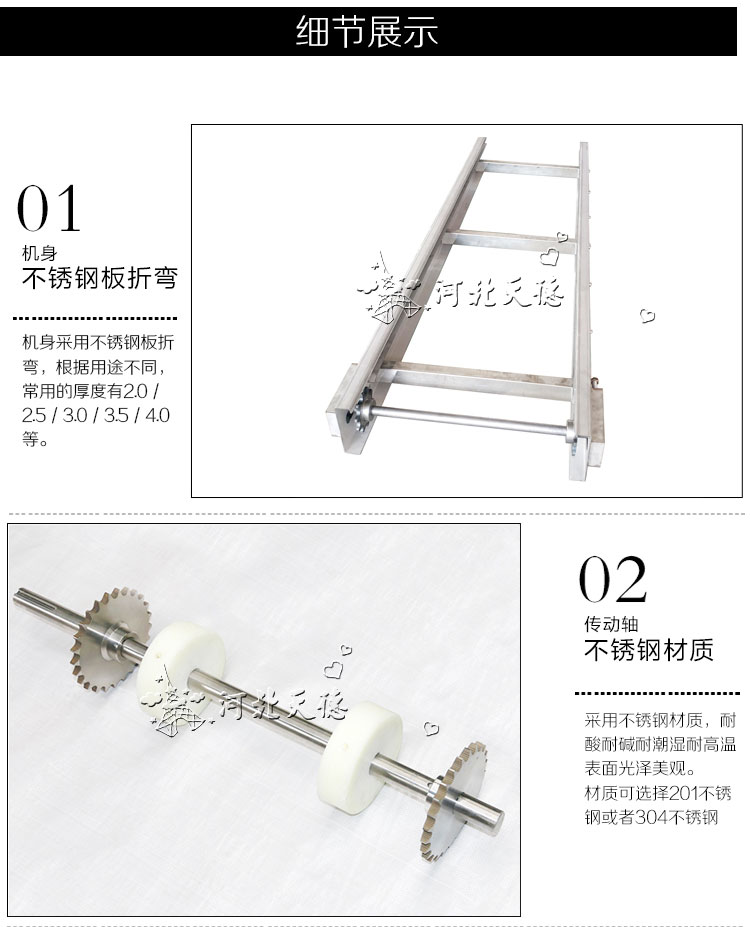 輸送機(jī)材質(zhì):有A3低碳鋼、201不銹鋼、304不銹鋼等。