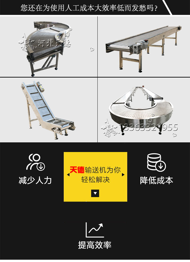 網(wǎng)帶輸送機結(jié)構(gòu)形式: 水平直線輸送、提升爬坡輸送、轉(zhuǎn)彎輸送等多種形式,輸送帶上還可增設提升擋板、側(cè)擋板等附件,能滿足各種工藝要求。輸送機材質(zhì):有A3低碳鋼、201不銹鋼、304不銹鋼等。