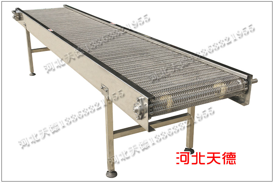山西陽泉客戶定制的不銹鋼網(wǎng)帶輸送機(jī),這臺(tái)輸送機(jī)用于高溫中使用,因此整機(jī)采用不銹鋼304材質(zhì),輸送機(jī)長(zhǎng)度5米,總寬度650毫米,高度大概半米,采用1.5千瓦電機(jī),配電減速機(jī)變頻器。